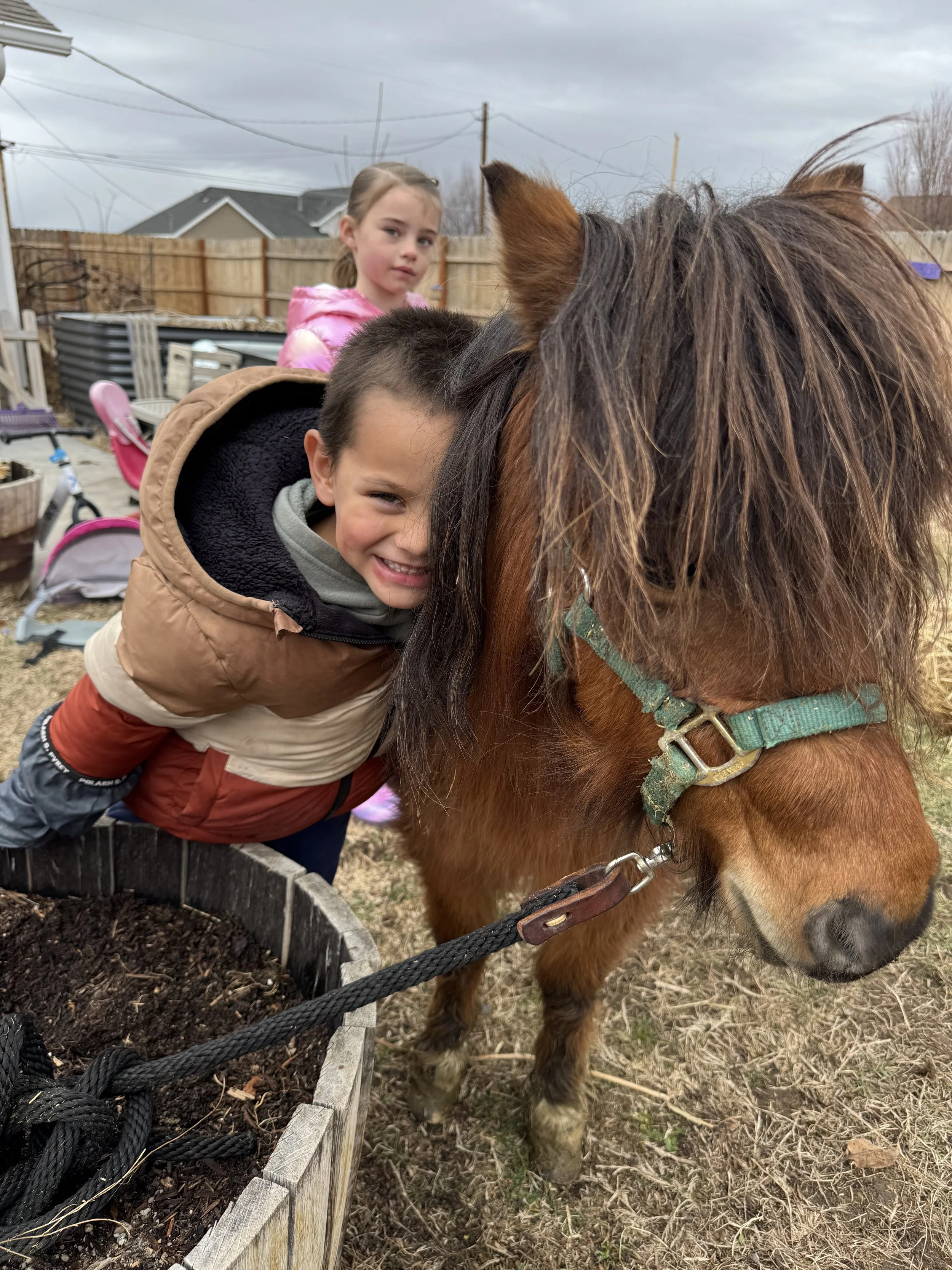 Poncho was given to us summer of 2025 by a sweet family who wanted him to go to a safe place where he could be loved on and cared for. We think he ended up right where he needs to be! The kids adore him and his shy but gentle nature is very welcoming and calming to those who are nervous or unconfident around equines. He loves to be groomed and just quietly stand next to you.